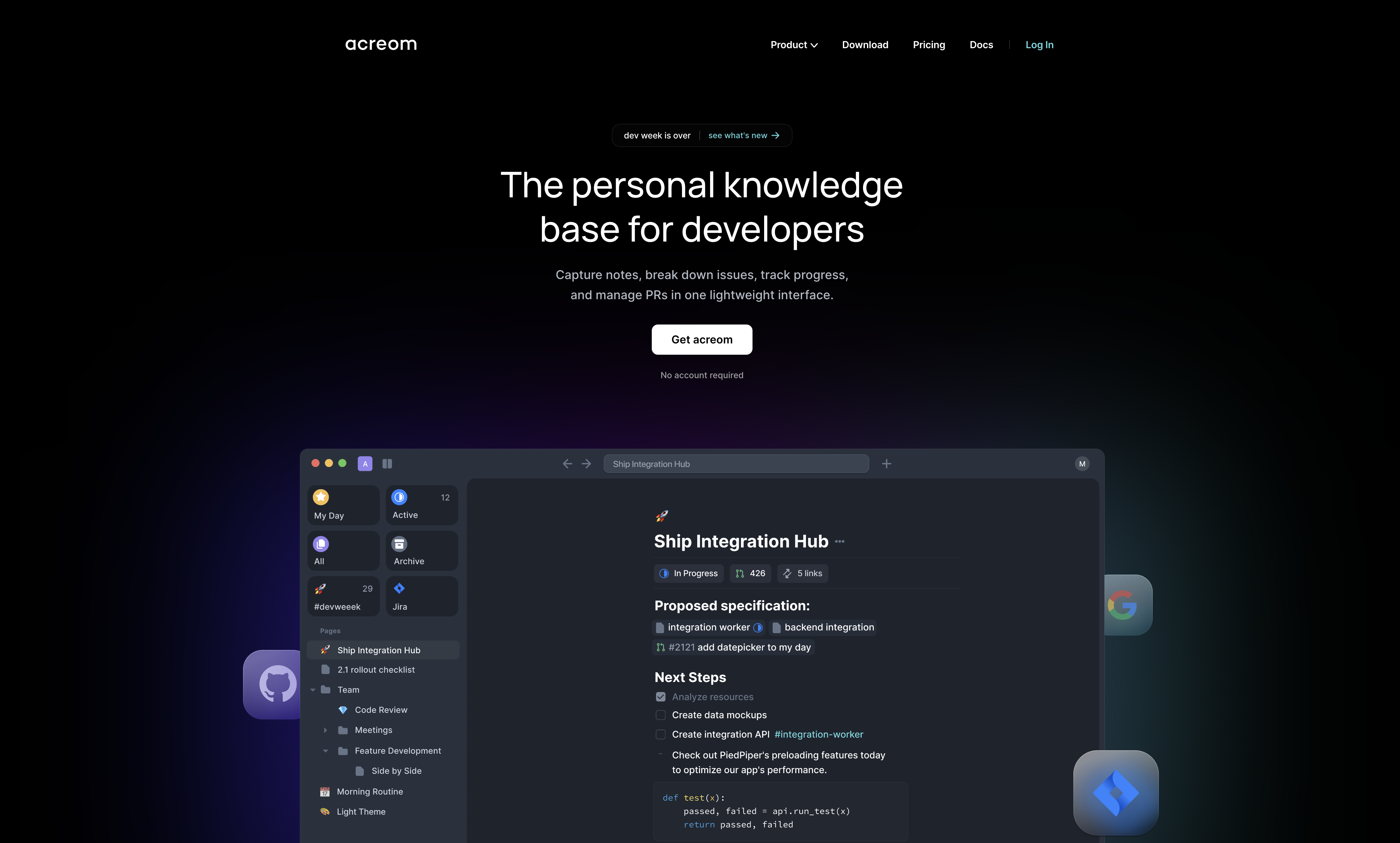 The personal knowledge base for developers. Capture notes, break down issue, track progress, and manage PRs in one lightweight interface.