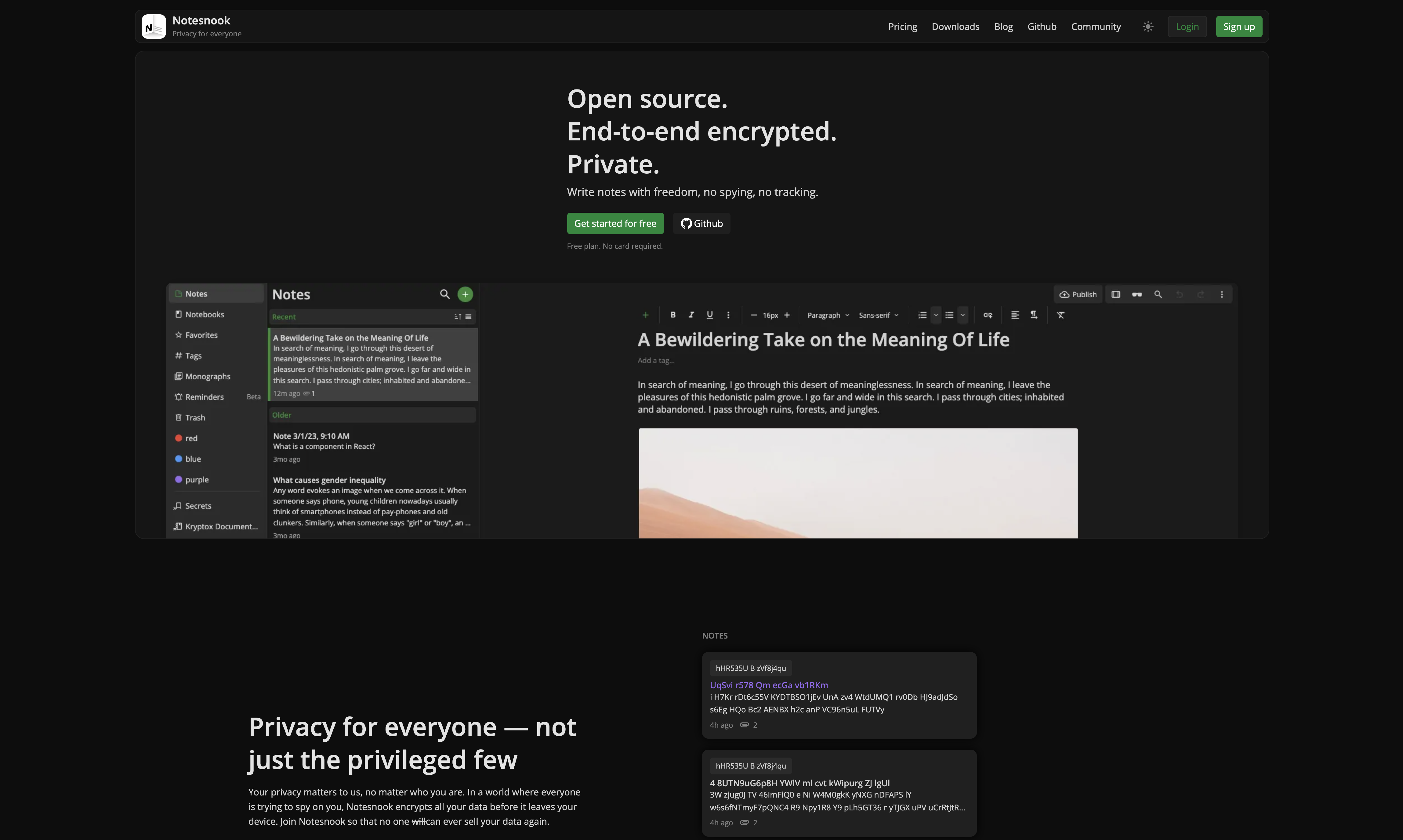 Open source. End-to-end encyrpted. Private. Write notes with freedom, no spying, no tracking. Learn More