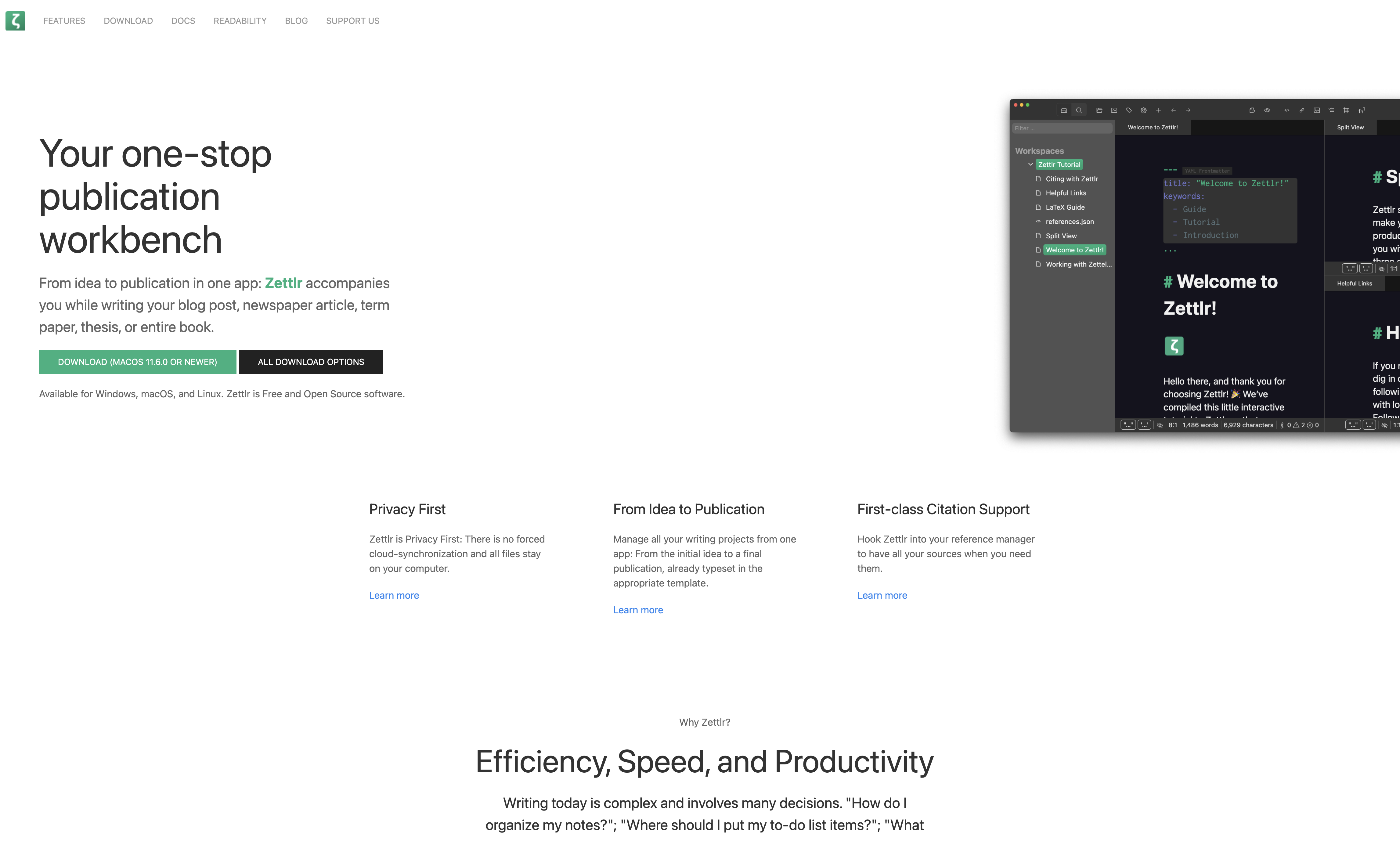 From idea to publication in one app: Zettlr accompanies you while writing your blog post, newspaper article, term paper, thesis,…