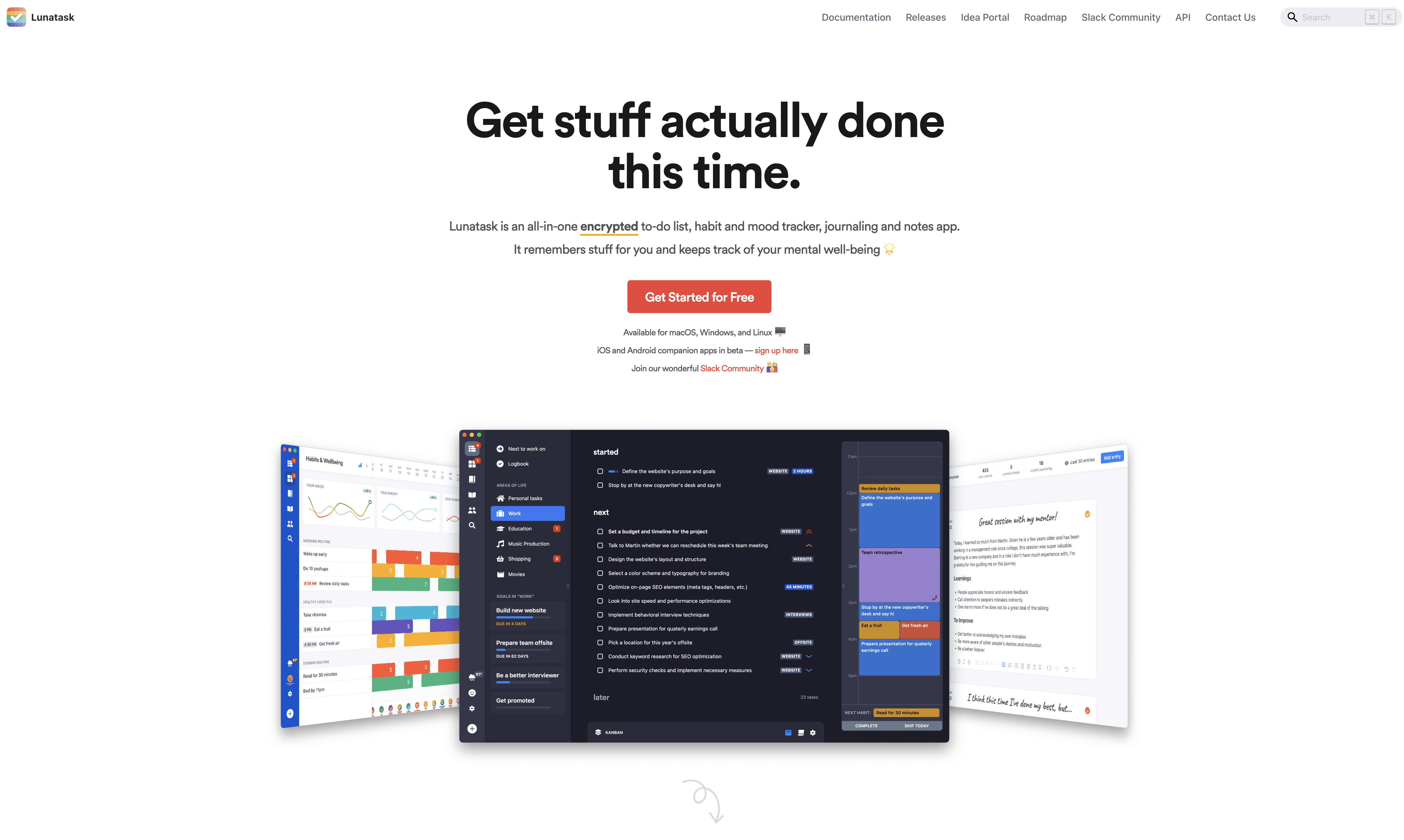 Lunatask is an all-in-one encrypted to-do list, habit, and modd tracker, journaling and notes app. It remembers stuff for you…